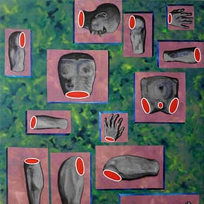 Contemplarea meticuloasă a propriilor dorințe ascunse, fără nevoia de a le împlini prin acțiune, este o activitate incriminată de teologii secolului XII. Nebănuitele plăceri pe care omul le poate experimenta fără a ieși din propria minte dau însă seama de reflexivitatea lui, de capacitatea de a se distanța de propria existență. Precedentele reprezentări umane ale lui Theodor Grigoraș erau lipsite de mâini, în DM II apare primul personaj ce ține un smartphone cu o mână ușor supradimensionată.