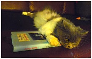 Pisica Mau, promovând cartea lui Cimpoeşu.