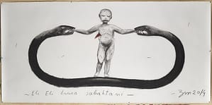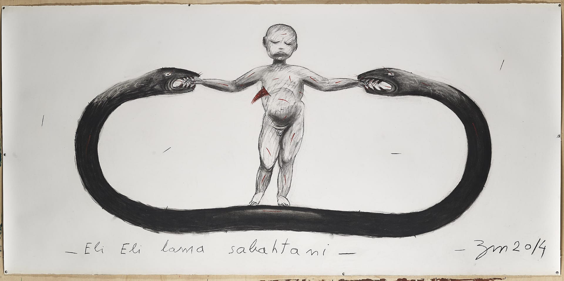 series of big drawings presented here, there is a piece called ‘Eli, eli,