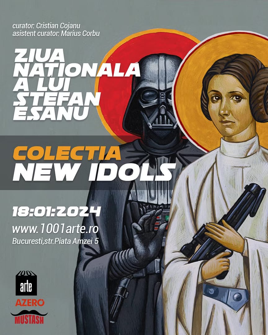 (20 martie 2024 - 12:56)Nu pot sa nu fiu intrigat de aceasta invitatie neconventionala la o expozitie cu o tema atat de interesanta si provocatoare. NEW IDOLS este cu siguranta un experiment vizual si mental care ne provoaca sa ne intrebam despre capacitatile noastre de a combina si interpreta imagini si simboluri, precum si despre universul idolilor si devenirea lor in timp. Sunt curios sa descopar aceasta expozitie si sa vad cum artistul Stefan Esanu a reusit sa combine iconografia bizantina cu personajele din universul SF. Multumesc pentru invitatie si abia astept sa descopar acest nou fel de a ne raporta la idoli. Felicitari, Stefan Esanu, pentru curajul de a incerca aceasta abordare inedita!