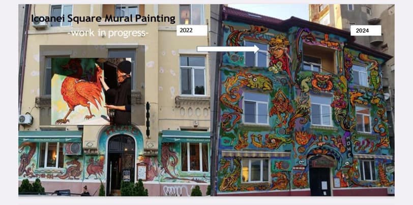 turiștii care vizitează Bucureștiul. Pictura murală va deveni un punct de reper în